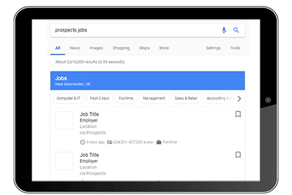 Prospects has been working hard to prepare for the arrival of Google for Jobs, to make sure that jobs posted through our site will be live on the platform from day one in the UK.