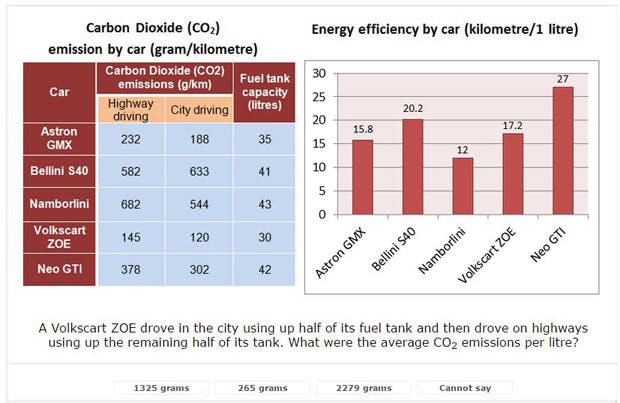 Here's one example of a table and graph-style numerical reasoning question: