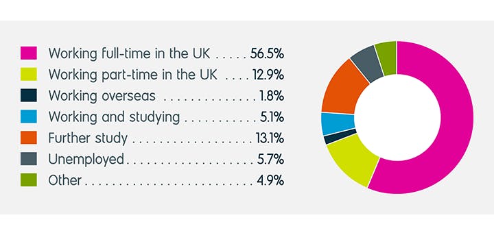 Outcomes for UK graduates from 2014/15 after six months.