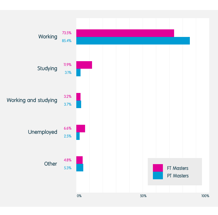 The proportion of graduates entering further study after six months went up from 13.1% to 15.7%. In total, over 6,000 more graduates took a Masters qualification on graduation last year.